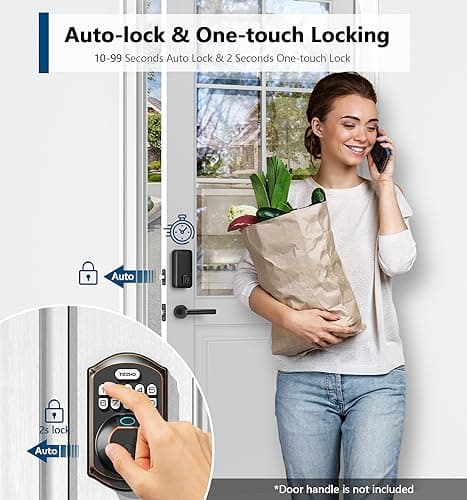 Keyless Entry Door Lock Deadbolt with Handle Set, Smart Front Door Lock Set, Keyless Entry Keypad Deadbolt, Electronic Keypad Deadbolt with Alexa (Black)