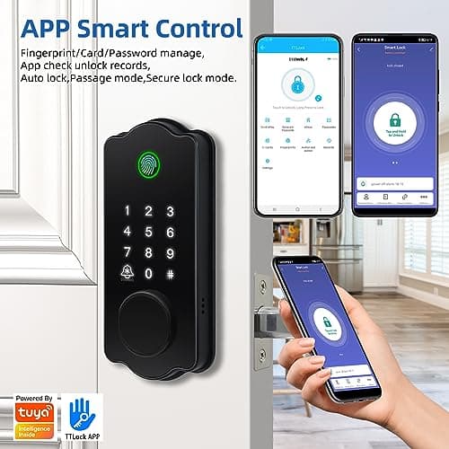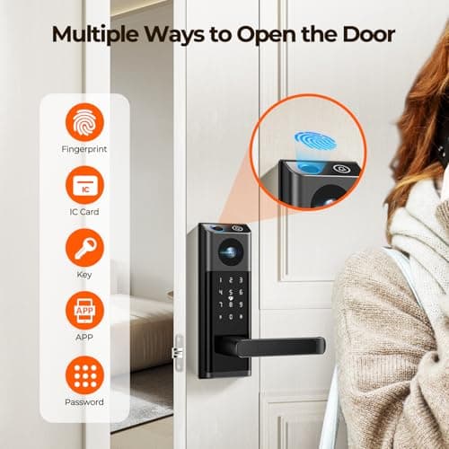Fingerprint Smart Door Lock with Handle & Keypad – Bluetooth Keyless Entry for Front Door, Home, Kids, Guests, Airbnb & Rental, App + Code Access, Compatible with Alexa & Google, Easy DIY Install