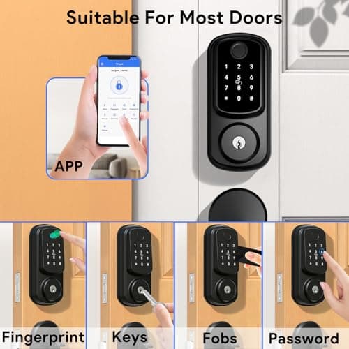 DEVO G3 Smart Lock,Fingerprint Door Lock, Wi-Fi Deadbolt Smart Lock,Keyless Entry Door Locks with Doorbell, APP Remote, Auto-Locks, Easy Install Front Digital Keypad Deadbolts, IP54Waterproof(Black)