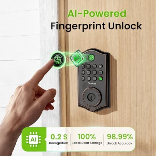 GHome Smart KD30B Deadbolt Lock with Keypad Fingerprint Keyless Entry Door Locks for Front Doors with APP Control Auto Lock for Home Rental House Apartment