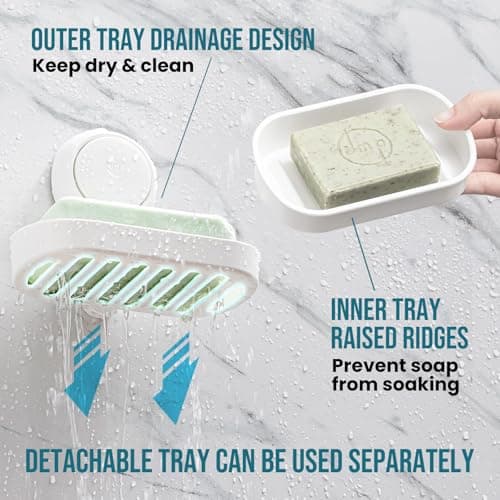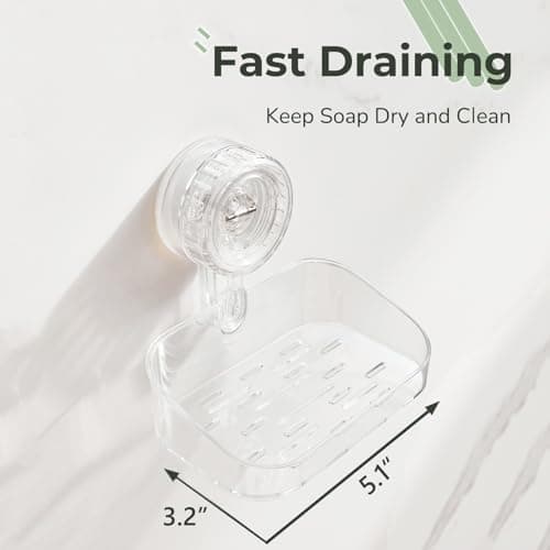 Habitamin Self-Draining Soap Dish – Fast Drying Soap Holder with 3 Suction Cups, Prevents Soap Melt & Water Buildup for Shower, Bathroom & Kitchen (Cool White)