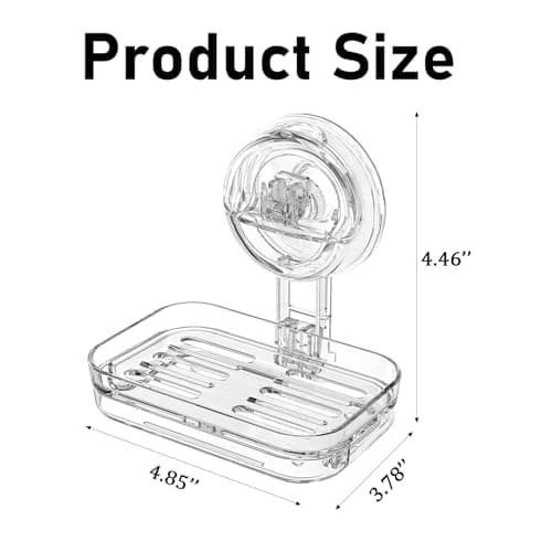 LEVERLOC Soap Dish Holder for Shower Suction Cup Wall Mounted Self Draining NO-Drilling Removable Bar Soap Sponge Holder for Bathroom Bathtub Kitchen Sink Waterproof Strong Vacuum Suction Adhesion
