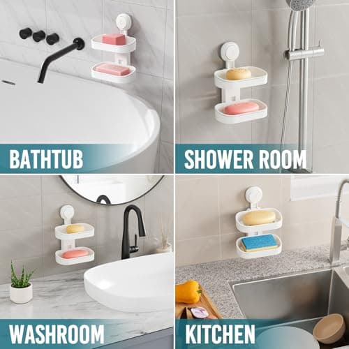TAILI Soap Holder Soap Dish for Shower, Suction Cup Soap Holder for Shower Wall, Bathroom Accessories, Removable Strong Hold Soap Saver, Drill Free Double Soap Dish, White 2 Layer