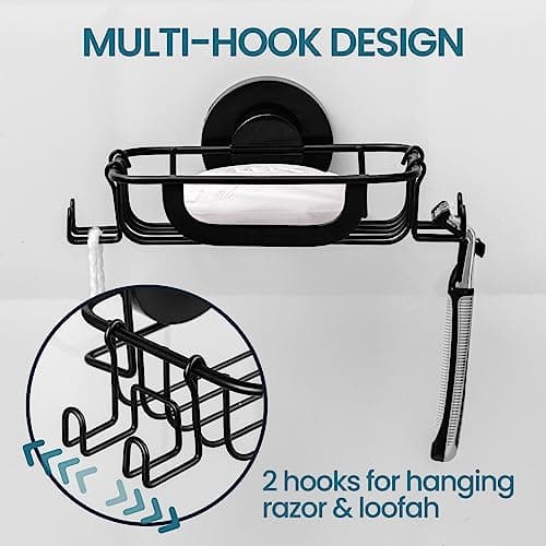 MASADI 2 Tier Soap Dish Holder, Soap Bar Holder with Hooks, Shampoo Bar Caddy for Shower Wall, Razor Holder for Shower, Bar Soap Container 304 Stainless Steel, Bathroom (Black)