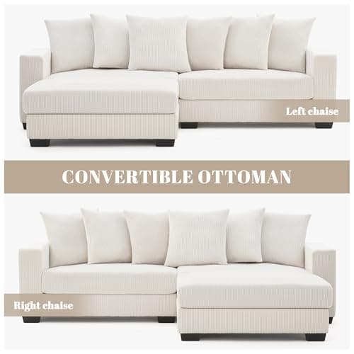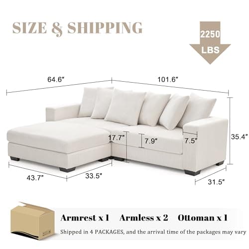 Mangodan 101.6" Deep Seat Modular Sectional Sofa, Comfy Corduroy Sectional Couches for Living Room, L-Shaped Upholstered Cloud Couch with Chaise, Widened Armrests for 4 People, Beige