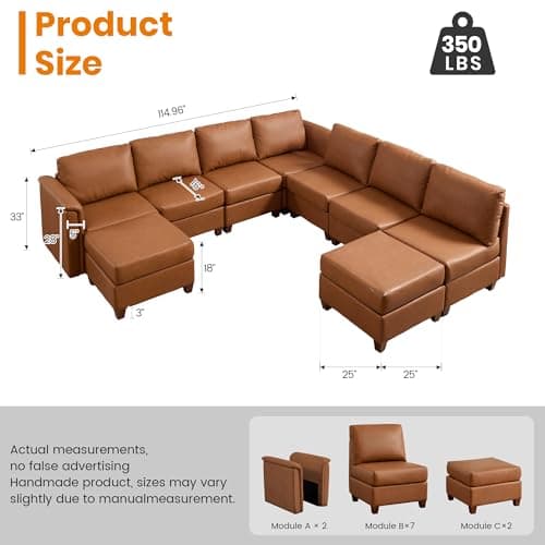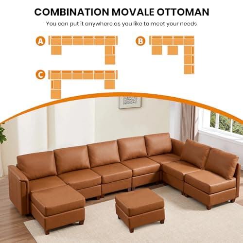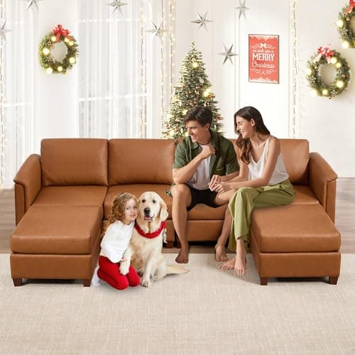 EASE MOOSE Leather Sectional Couch, Oversized Modular Sectional Sofas, Wide Deep Seat Modular Couch, Scratch Resistant Faux Leather Material, L Shaped Sofa for Big Spaces, Beige