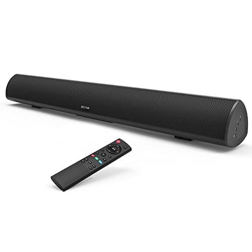 Sound bar, BESTISAN Soundbar Wired and Wireless Bluetooth 5.0 HDMI-ARC Speaker for TV (28 Inches, HDMI-ARC Connection, Optical Cable Included, DSP, Bass Adjustable, Wall Mountable)