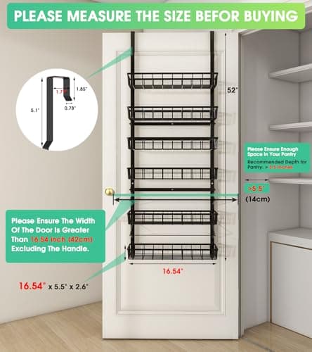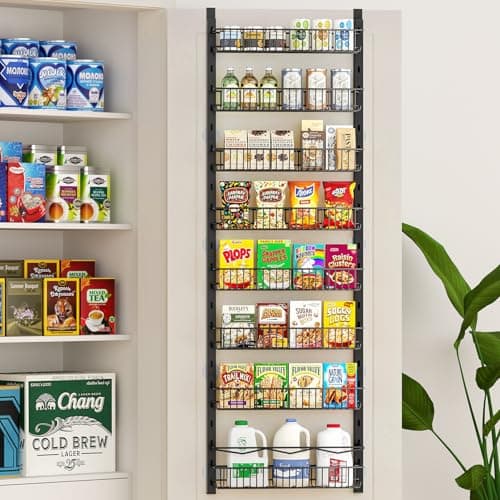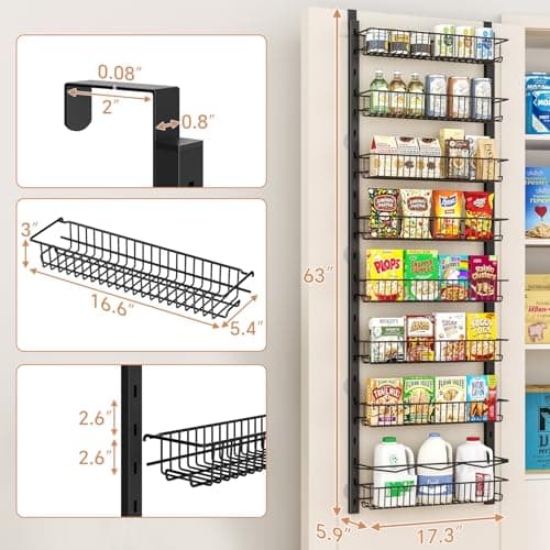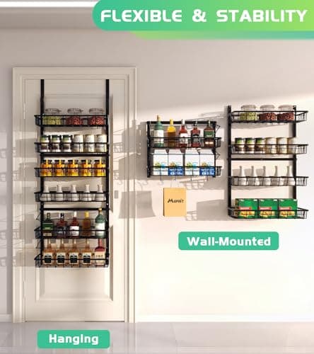 POKIPO 8 Tier Over The Door Pantry Organizer, 2 IN 1 Wall Mount or Hanging Spice Rack Seasoning Shelves with Adjustable Basket, Back of Door Organizer and Storage for Kitchen Cabinet and Room Closet