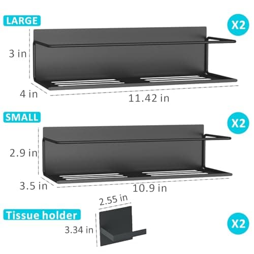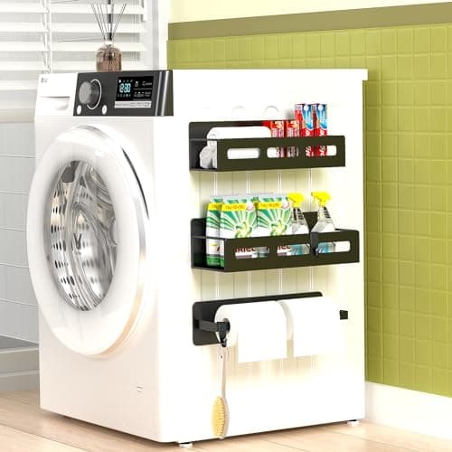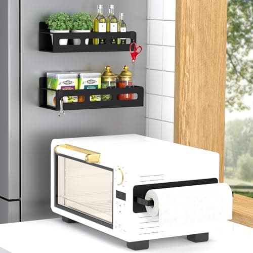 Roysili Magnetic Spice Rack For Refrigerator, Magnetic Fridge Shelf For Kitchen, Magnetic Shelf For Fridge Space Saving Black 4 Pack With Magnetic Paper Towel Holder