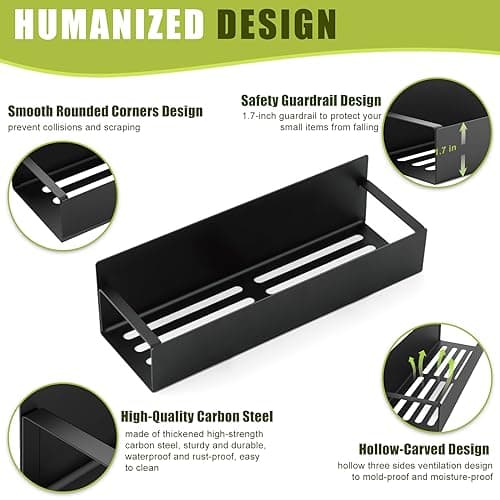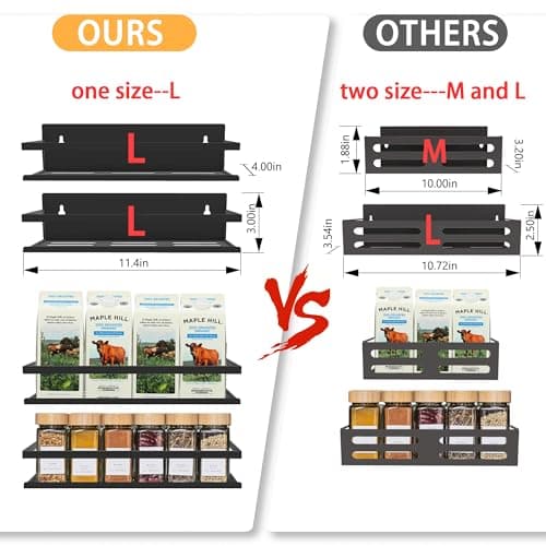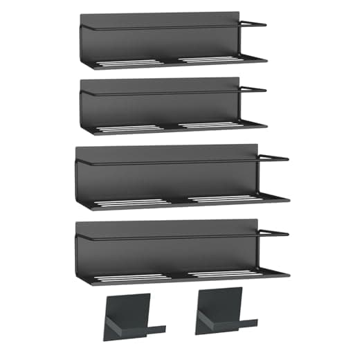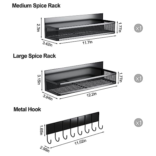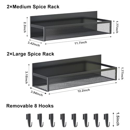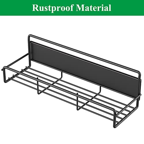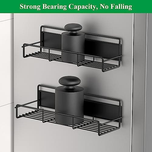 Magnetic Spice Rack, Thipoten Strong Magnetic Shelf with 2 Removable Hooks, Perfect Space Saver for Small Kitchen/ Apartment, Awesome Metal Cabinet for Holding Spices, Jars, Bottle, Beve(Black, 2Pack)