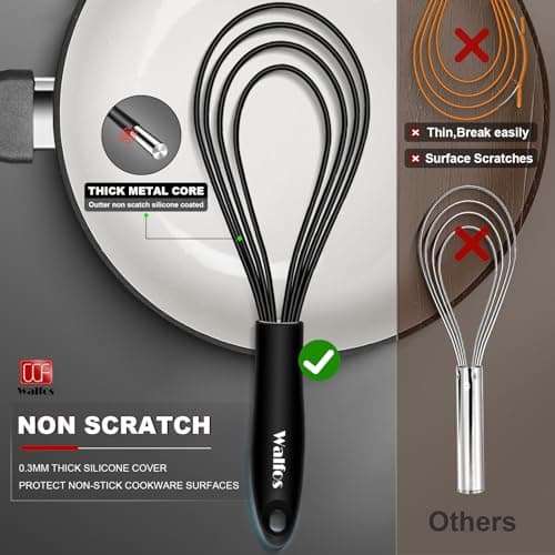 The fastest next comparison is usually silicone / nonstick-safe if you want to test classic metal against coated wires. Dishwasher-safe is the better second check when cleanup is the real tie-breaker.