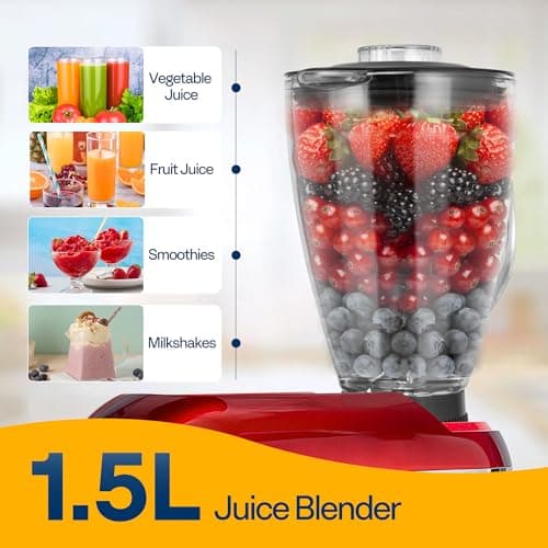 VIVOHOME 3-in-1 Stand Mixer, 6 Quart Electric Tilt-Head Kitchen Mixer with Bowl, Multifunctional Food Mixer with Meat Grinder and Blender Attachments, Dough Hook, Beater, and Whisk, Red