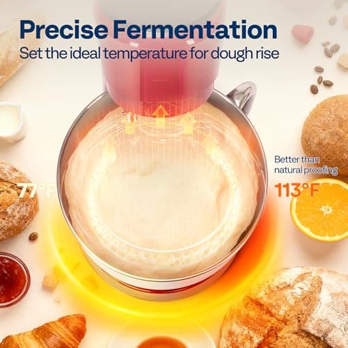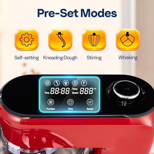 VIVOHOME Stand Mixer with Fermentation, One-Touch Presets Electric Dough Mixer with 6 Qt Bowl, Kitchen Standing Mixer for Baking, Cake with Flex Edge Beater, Bread Hook, Whisk, Red