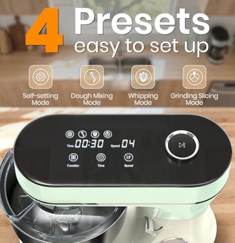 Bonnor Stand Mixer, 6QT Electric Kitchen Mixer for Baking Cakes & Dough, LED Smart Touchscreen, 11-Speed Tilt-Head & Timer, 4 Presets, Mixer with Bowl, Dough Hook/Whisk/Beater, Green
