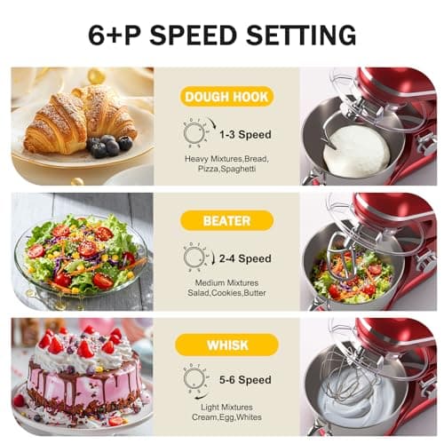 Mixers Kitchen Electric Stand Mixer, 6.5 Quart 6 Speed Tilt-Head Kitchen Mixer Red