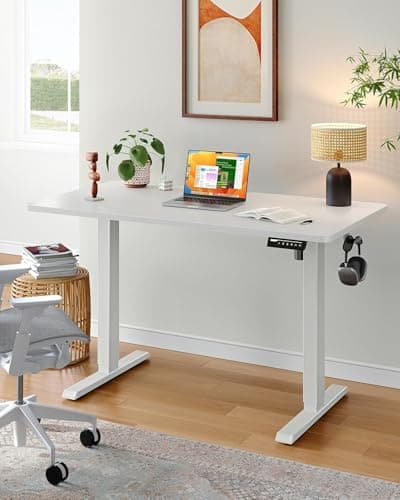 Desky Single Electric Height Table โ Ergonomic Workstation with 47.2 x 29.5 in White Surface โ Motorised Height Range for Home Office Productivity