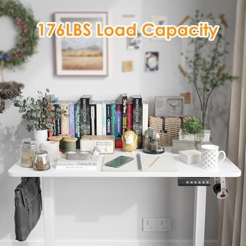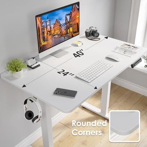 YDN Electric Standing Desk Adjustable Height, 40 x 24 Inches Stand up Desk with Cable Management, Home Office Desks with Splice Board & White Frame, White Top