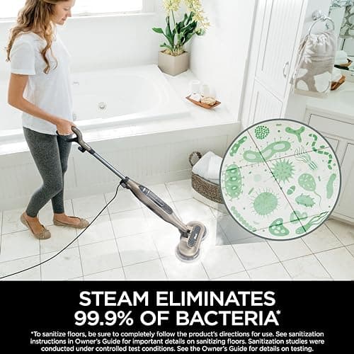Shark Steam & Scrub Steam Mop, All-in-One Scrubbing and Sanitizing Hard Floor Cleaner, LED Headlights, 4 Dirt Grip Soft Scrub Pads Included, XL Water Tank, Swivel Steering, Hawaiian Grey, S8001