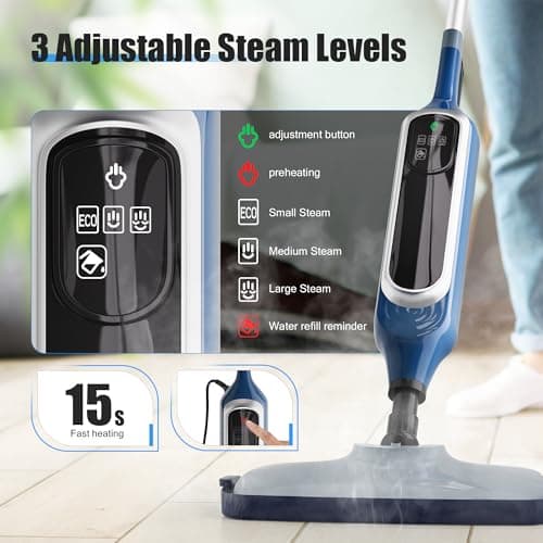12-in-1 Steam Mop, Detachable Handheld Steam Cleaner for Home, 23FT Cord, 3 Steam Modes & LED Display, Steam Mops for Floor Cleaning, Bathroom, Windows, Sofas, Clothes, Tile Grout, Carpets, Furniture