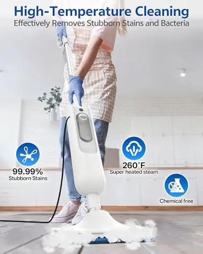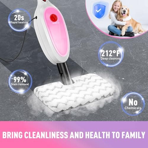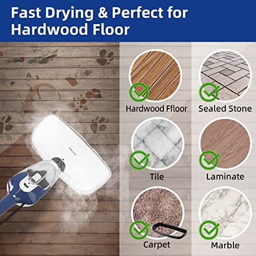 For vinyl floors, the big priorities are controlled steam output, quick-drying pads, and a smooth, non-scratch head. Look for adjustable steam settings, a tight seal at the pad edges, and microfiber that glides instead of drags. Lightweight steering also matters because vinyl often spans open rooms, and you don’t want to press down hard to get results.