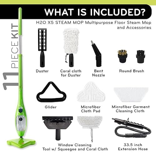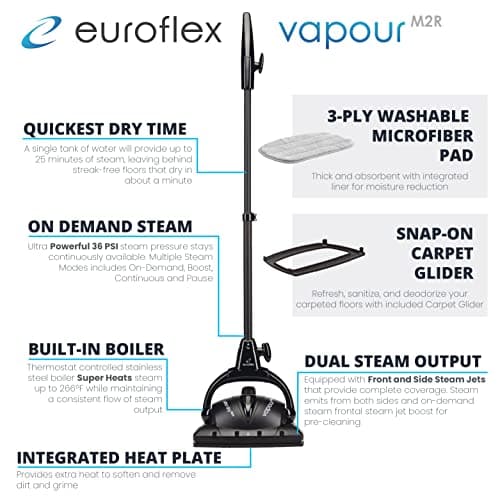 Euroflex Vapour Plus Steam Mop 18-Piece Set with Precision Floor Care Kit; Consumer Reports Recommended; 295°F & 50 PSI; Kills 99.9% Bacteria & Viruses incl. Influenza (H1N1); 5 Year Warranty