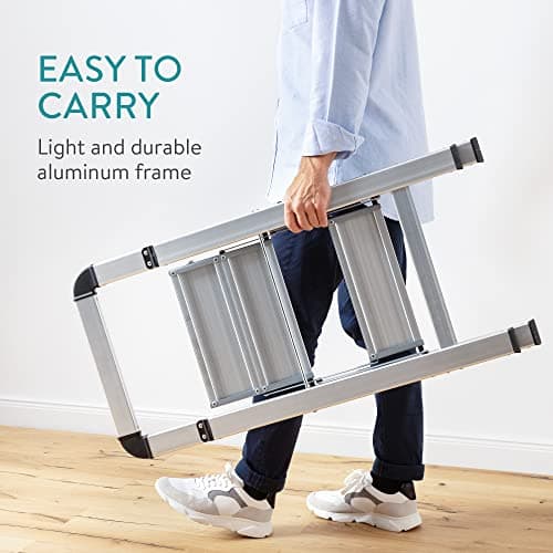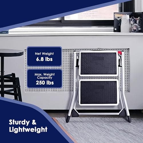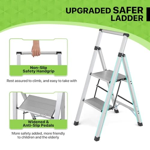 Magshion 2 Step Ladder with Wide Anti-Slip Pedals, Lightweight Aluminum Folding Step Stools with Handgrip for Home and Office (330lbs Capacity)