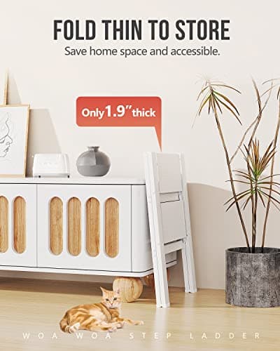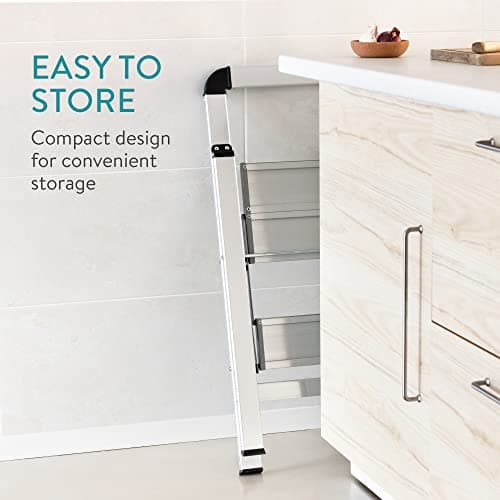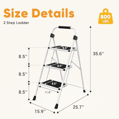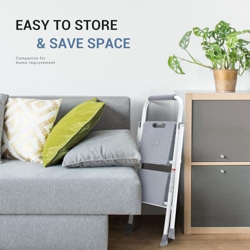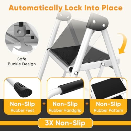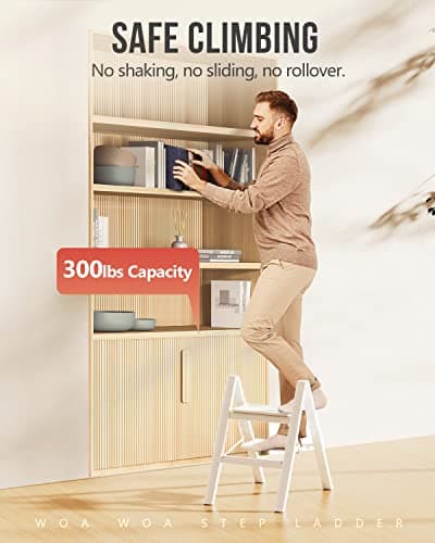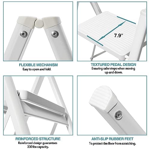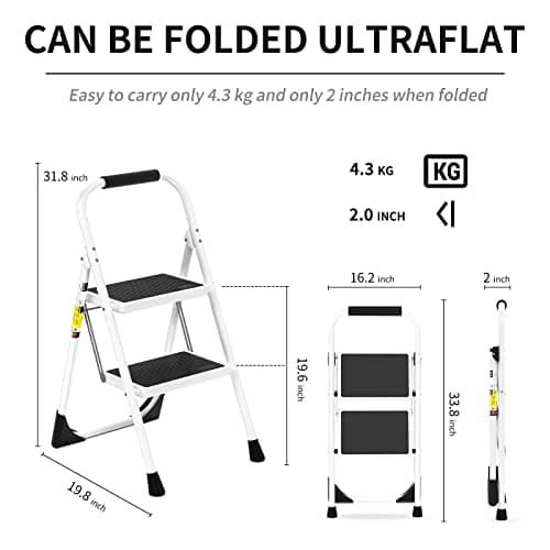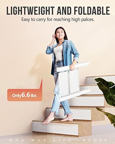 WOA WOA 2 Step Ladder, Foldable Step Stool, Aluminum Lightweight Ladder for Home Kitchen Closet, Anti-Slip Pedals, Ease of Folding, Portable, 300lbs Capacity - White