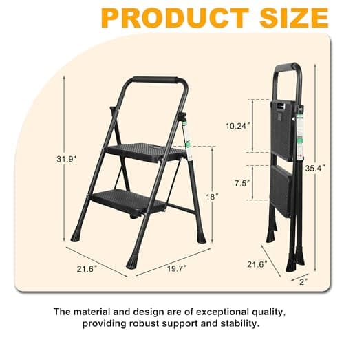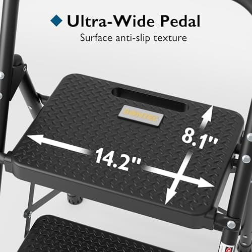 600lbs 2 Step Ladder,Folding Step Stool with Wide Anti-Slip Pedal, Heavy Duty Sturdy Steel Ladder with Handgrip,Portable Steel Step Stool for Home Kitchen Library Office (Matte Black)