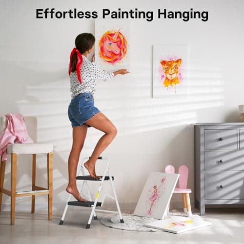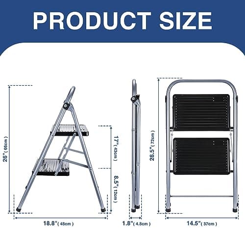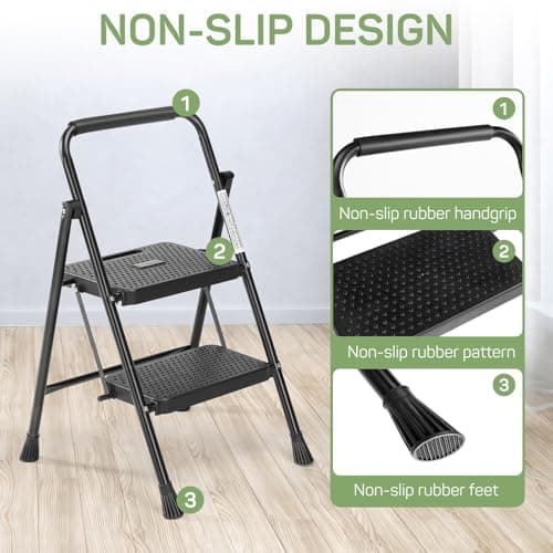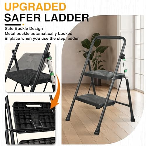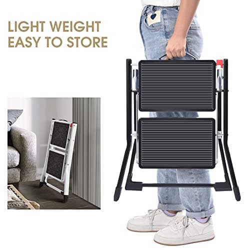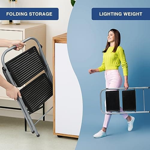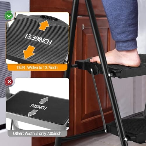 2 Step Ladder Folding Step Stool, Heavy Duty 330 Lbs Load Stepladder, Small Kitchen/Closet Ladder for Adults/Kids, Lightweight Step Ladder 2 Step Folding with Anti-Slip Wide Pedal for Home by OOSOFITT
