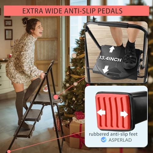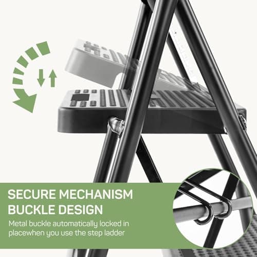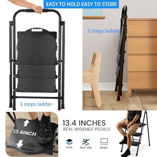 NEWBULIG Step Ladder, 3 Sturdy Step Stool with Anti-Slip Pedal & Comfortable Handrail, 330lbs Capacity, Portable Heavy Duty Step Stool for Kitchen, Garage & Outdoor Use, Black