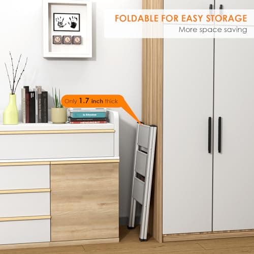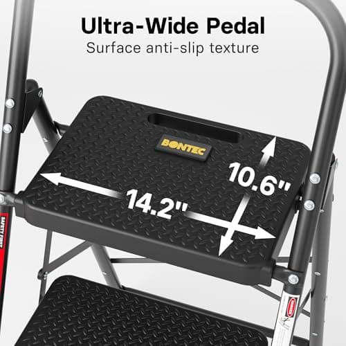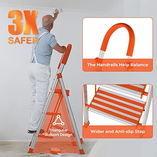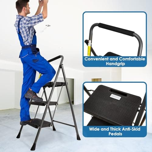 HBTower Step Ladder, Folding Step Stool with Wide Anti-Slip Pedal, Sturdy Steel Ladder, Convenient Handrail, Lightweight, Portable Steel Step Stool