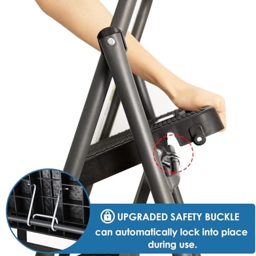 3 Step Ladder, GOLYTON Folding Step Stool with Anti-Slip Wide Pedal & Convenient Handgrip, 500lbs Capacity Steel Ladder for Household and Office, Grey