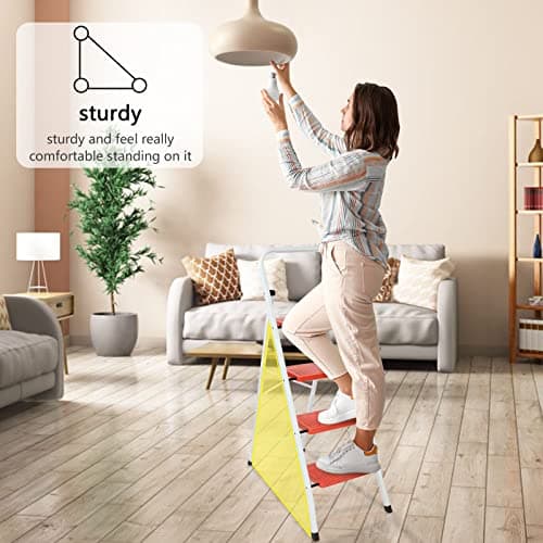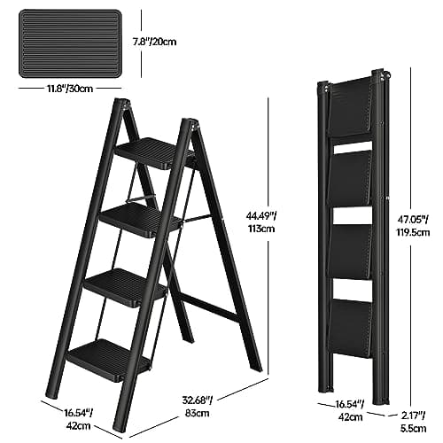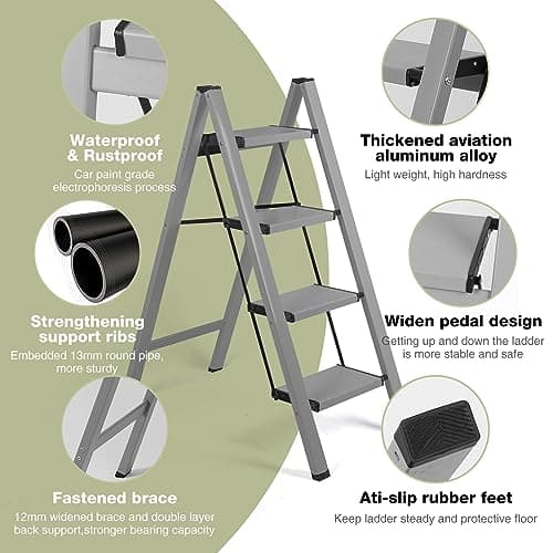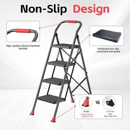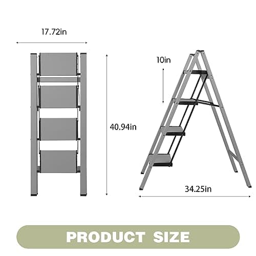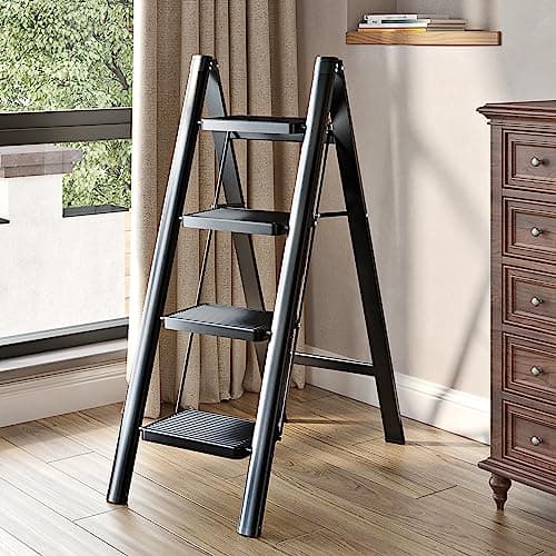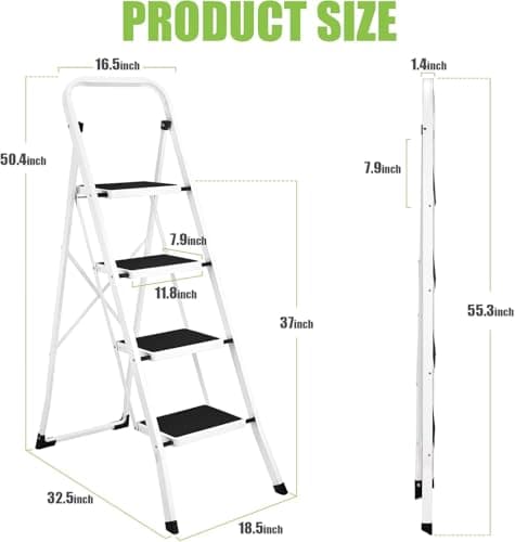 LUISLADDERS 4 Step Ladder, Folding Step Stool, Heavy Duty Step Ladder, Sturdy with Handrails, Anti-Slip & Wide Pedal, Lightweight Portable Ladders for Adults, Home Kitchen 350 lbs