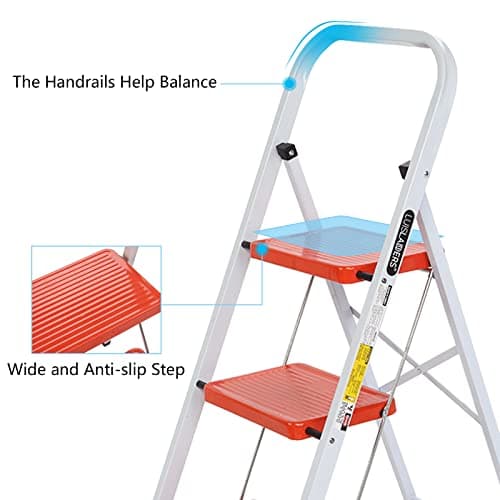 HBTower Step Ladder, Folding Step Stool with Wide Anti-Slip Pedal, Sturdy Steel Ladder, Convenient Handrail, Lightweight, Portable Steel Step Stool