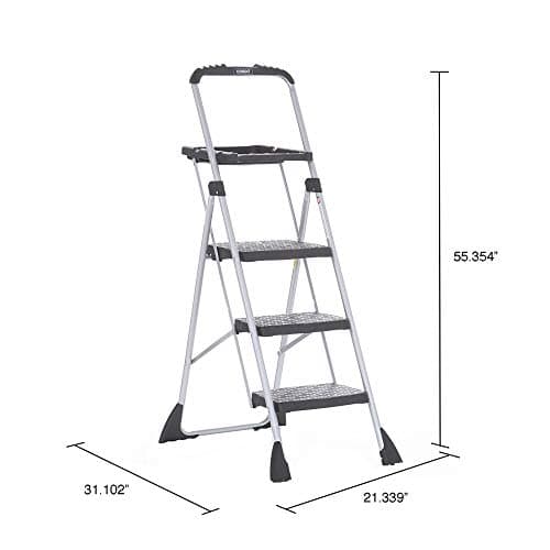 Cosco 3-Step Lightweight Aluminum Folding Step Ladder with Non-Marring Leg Tips, Slip-Resistant Platform, ANSI Rated 225 lbs, Home Furniture and Furnishings