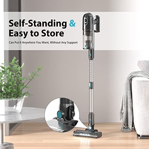Hysinixs Cordless Vacuum Cleaner, Powerful Lightweight Stick Vacuum with Self-Standing, Anti-Tangle, 8-in-1 Rechargeable Vacuum Cleaners for Home, Hardwood Floors, Carpet, Pet Hair