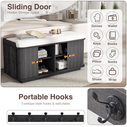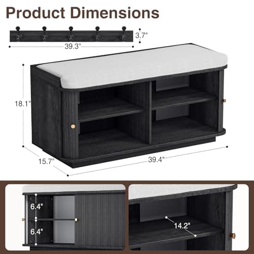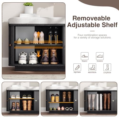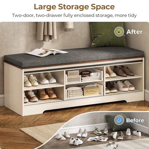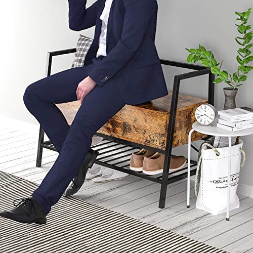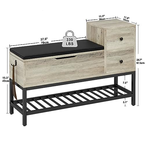 IRONCK Storage Bench, Industrial Shoe Rack Bench with Storage Box, Holds Up to 240 LB Shoe Organizer for Entryway, Bedroom, Closet & Hallway, Entryway Bathroom