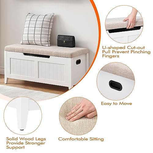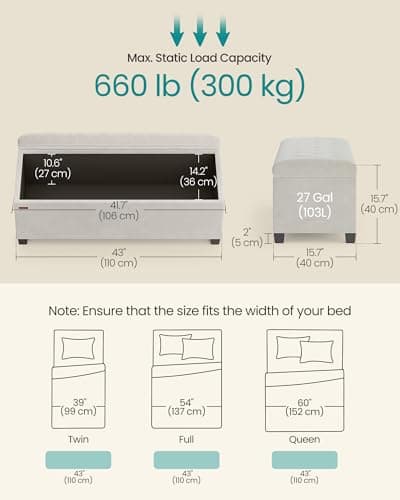 SONGMICS Storage Ottoman Bench, Foot Rest with Legs, 15.7 x 43.3 x 15.7 Inches, End of Bed Bench, Storage Chest, Load up to 660 lb, for Living Room, Bedroom, Entryway, Dark Gray ULSF088G01