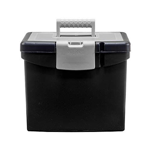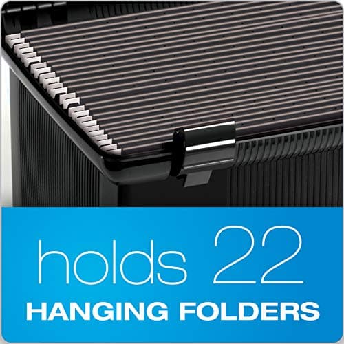 Pendaflex Portable File Box with File Rails, Simple Document Storage, File Bin for Home and Office, Hinged Lid with Double Latch Closure, Black, 3 Black Letter Size Hanging Folders Included (41742AMZ)