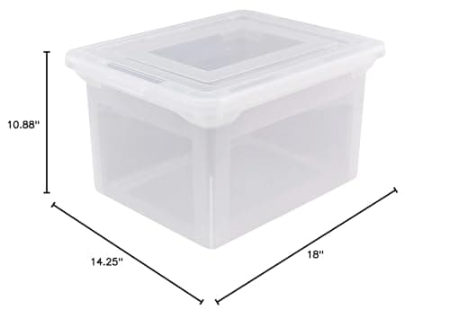 IRIS USA File Box, Plastic File Organizer with Lids for Letter/Legal File, Portable Document Box For Moving, Storage Bin with Durable and Secure Lid, Stackable Nestable BPA-Free, Clear 35 Qt. 4 Pack