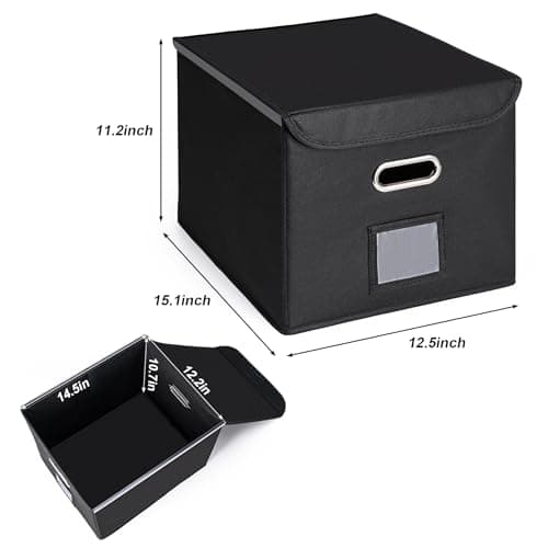 Hleelomi Collapsible File Box with Lid & Plastic Slide - Hanging Document Organizer for Office/Home, 14.96x12.6x10.83 Inch,Decorative Home File Bin,Black, 1 Pack (No Folders Included)