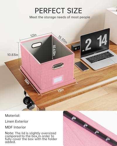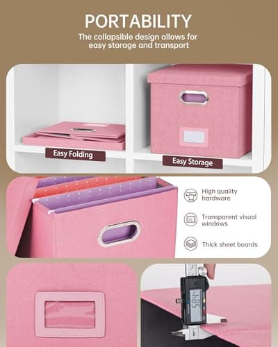 Oterri File Organizer, File Box, File Cabinet for Letter File Folder Storage, Portable Storage Bins with Lids for Office/Decor/Home, 1 Pack, New-pink-Box only