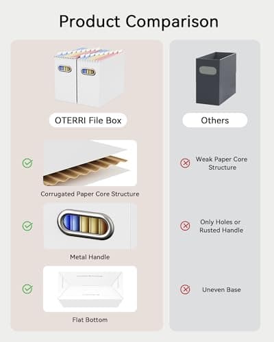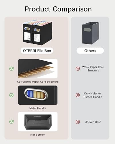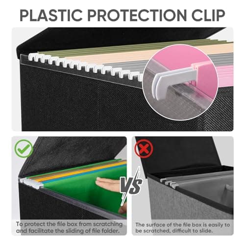 Start with the documents and the storage habit, not the marketing extras. If the box will move between rooms, cars, or desks, begin with best storage file box for portable carry and carry handles storage file box. If the file set needs hanging folders ready to use, compare hanging files storage file box with letter / legal storage file box. When the main concern is protecting hard-to-replace paperwork, jump first to best storage file box for maximum security or fireproof document box storage file box instead of browsing softer decorative options.