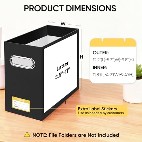 BALEINE File Organizer Box, Cardboard File Folder Organizer with Handle for Letter Size, Portable Collapsible Hanging Filing Box for Home Office Document Storage (2 Pack, Black)