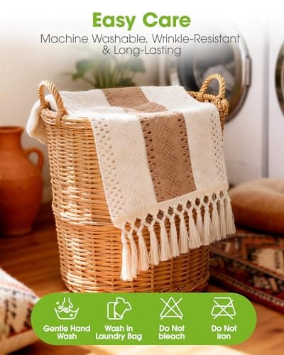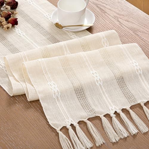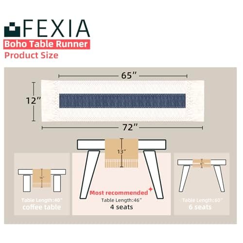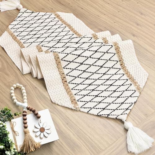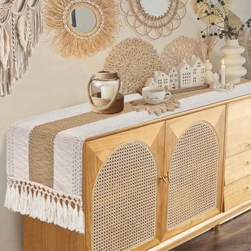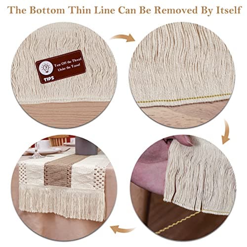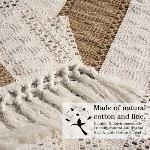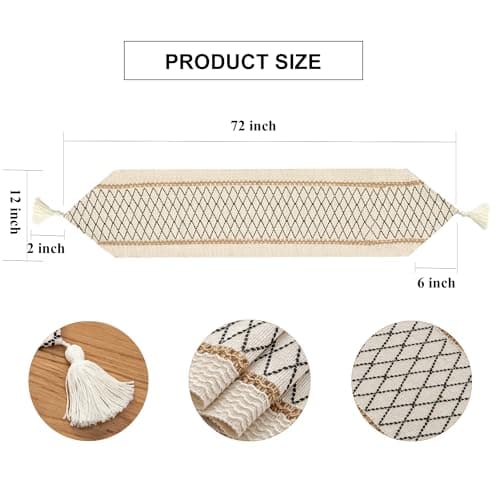 FEXIA Boho Table Runner for Thanksgiving Fall Christmas Home Decor with Tassels 72 Inches Long Pottery barn Furniture Farmhouse Rustic Macrame Burlap Table Decoration for Living Room (12x72 Inches)