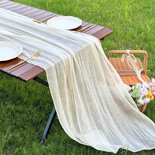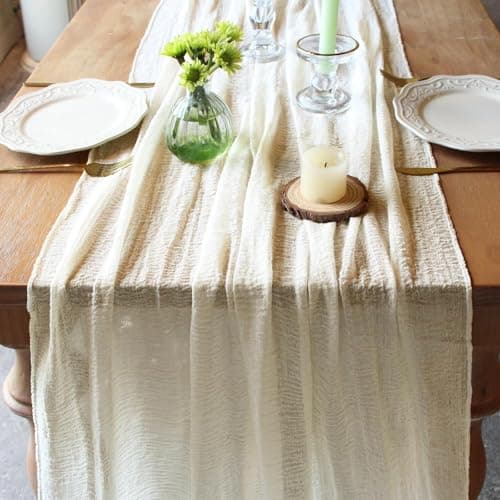 Socomi Ivory White Cheesecloth Table Runner Easter Spring Boho Rustic Gauze 120 inch 10FT Cheese Cloth Runner for Wedding Party Baby Shower Birthday Home Decor Holiday Decorations