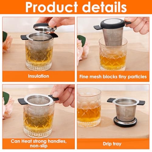 Ohtomber Tea Infuser Strainers, Stainless Steel Loose Leaf Tea Strainer Stepper with Heat Proof Double Handles, Extra Fine Mesh Ball Infusers, Diffuser Holder Filter for Mugs