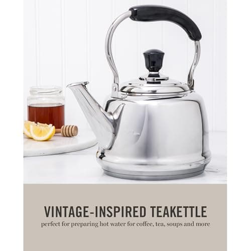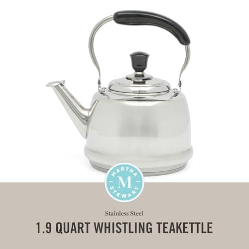 Martha Stewart Kingstree Large 2 Qt Stainless Steel Tea Kettle – Heavy Gauge Durable Whistling Tea Kettle for Stove Top, Easy Pour, Classic Design