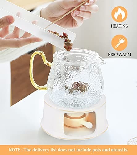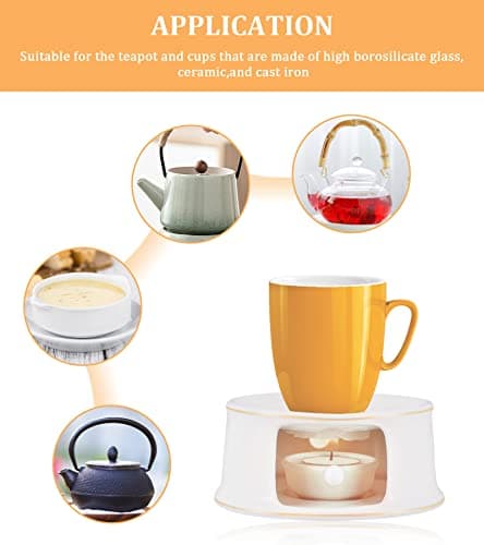 KAYCROWN Teapot Warmer, Ceramic Tea Warmer for Teapot, Tealight Warmer with Tealight Holder for Heating Coffee Milk Tea Warmer, Teapot Heater (White)