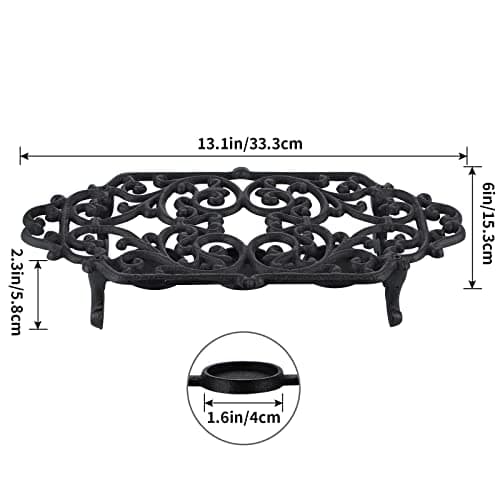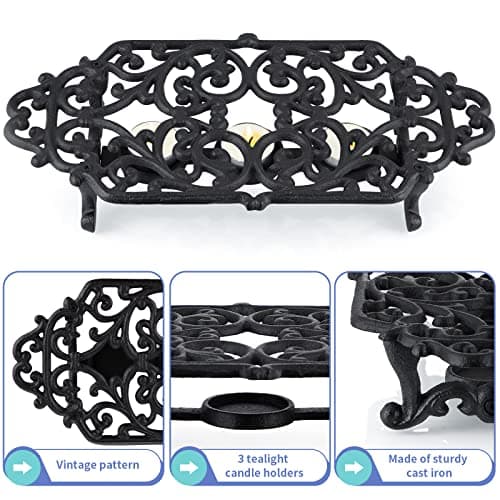 Sungmor Cast Iron Teapot Warmer Dish Cups Heater Pot Trivet - Rustic & Graceful Pattern Design with Tealight Holder - Heavy Duty & Decorative Candle Holder Stands for Heat Food Coffee Milk or Tea